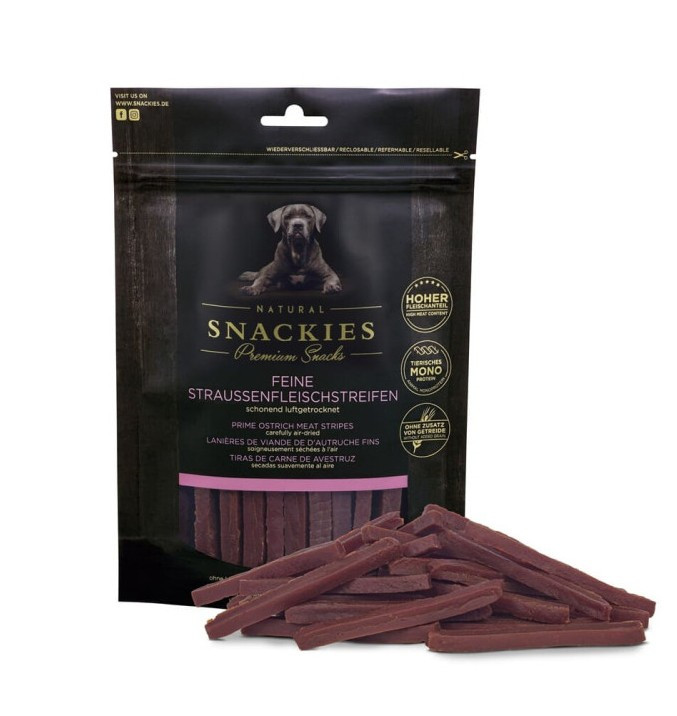 Az újrazárható tasakban a strucchúscsíkok sokáig frissek és ízletesek maradnak. Tökéletes nassolnivaló azoknak a kutyáknak, akiknek figyelniük kell az alakjukra, vagy ételintoleranciájuk van.