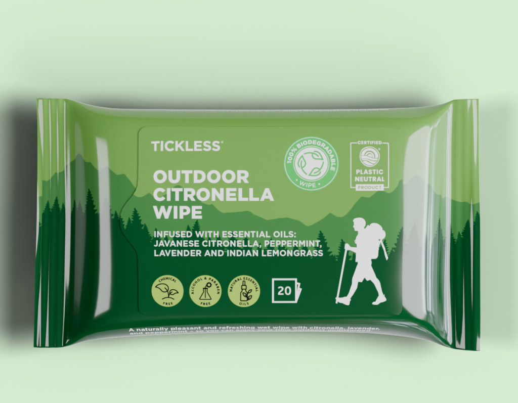 Tartsd távol a rovarokat a Tickless® természetes törlőkendő segítségével, amely egy környezet- és állatbarát megoldás a szabadban való rovarmentes kikapcsolódáshoz. Biológiailag lebomló nedves törlőkendőink jávai citronella, borsmenta, levendula és indiai citromfű illóolajok keverékével vannak átitatva, ami biztonságos, hatékony és kellemes illatú megoldást nyújt a kullancsok, bolhák és szúnyogok természetes távoltartására.